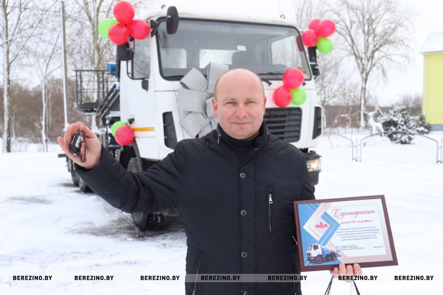 В торжественной обстановке ключи и сертификаты от новой автовышки директору АгроМАЗа Дмитрию Белозору сегодня вручили заместитель генерального директора ОАО «МАЗ» - УКХ «БЕЛАВТОМАЗ» Геннадий Тумилович и директор Гродненского механического завода, входящего в состав холдинга «БЕЛАВТОМАЗ», Сергей Иворовский.